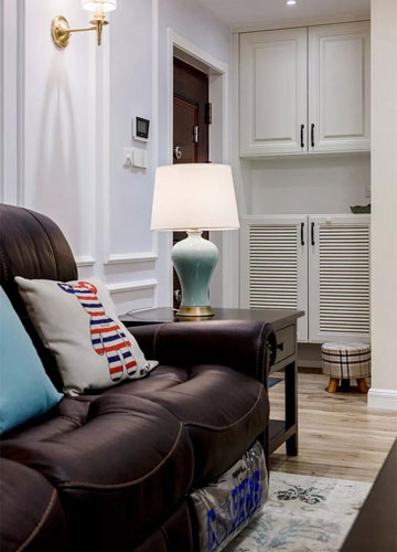 ▲ 挑空的玄關鞋柜,根據主人的使用習慣,方便擺放日常穿的鞋,換季的或少穿的鞋就可以擺放進柜子里,旁邊再擺一張小換鞋凳,為換鞋提供了極大的方便。