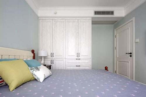 ▲ 一體式衣柜為臥室帶來了豐富的收納空間,整個淡藍色調的空間,搭配出一股淡淡的清爽氣息。