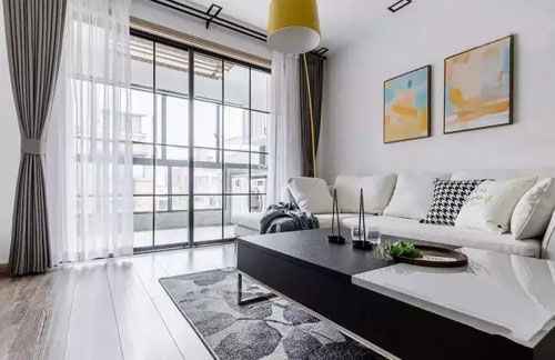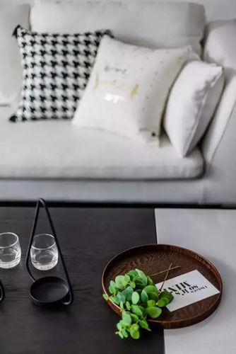 北歐風的沙發搭配宜家風的原木茶幾,特別是白色和有黑色的色差對比,絕對有一種樸實自然氣質,有木有?