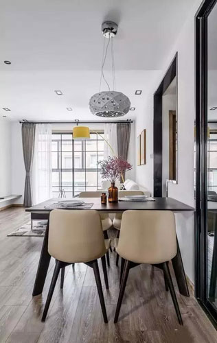 餐桌很簡單,但是看起來卻很溫馨,線條簡潔的餐桌椅搭配一盞獨特的吊燈,營造出來了一種溫馨愜意的居家氛圍,是不是頓時覺得胃口更好了呢?