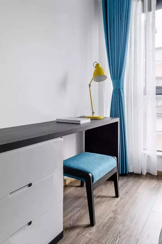 誰說主臥就不用有辦公桌了?所以屋主在臥室中也設置了一個簡易的工作桌,不僅滿足了日常所需,還具備一定的收納功能哦。
