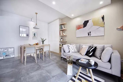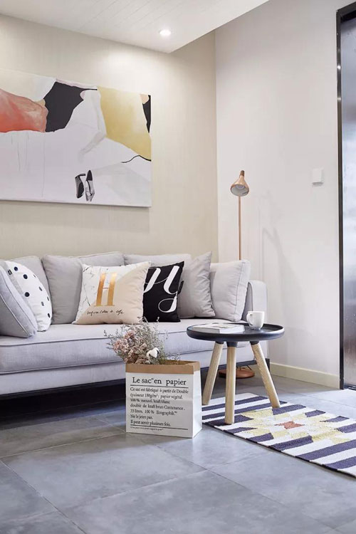 以白色為基色,搭配灰色、白色,非常經典的北歐風搭配,簡潔明了,小戶型使用淺色調進行裝飾,整體看起來較開闊。