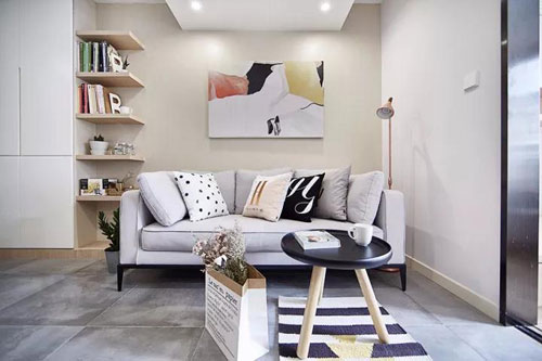 簡單的三人沙發即可滿足一家三口的生活需求,小茶幾,靈活不占地方,還利用角落空間設計成了一個小小的閱讀角。