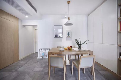 原木餐桌椅,暖暖的木色,為用餐營造了一種非常溫馨的家的味道。