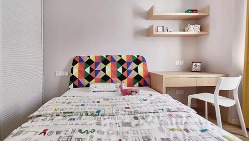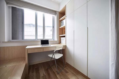 床尾的寫字臺,可在這里看書、玩電腦,還有著一定的收納功能。