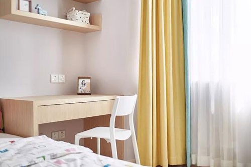 亮黃色和淡藍色窗簾,不失兒童的天真活潑。