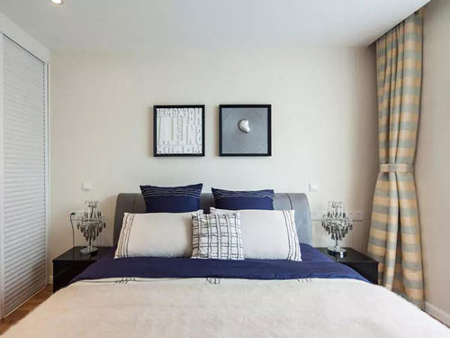 ▲簡潔現(xiàn)代的畫框、亞力克材質的置物柜、藏青與淺米色搭配,令空間分外簡潔,充滿時尚現(xiàn)代風情。