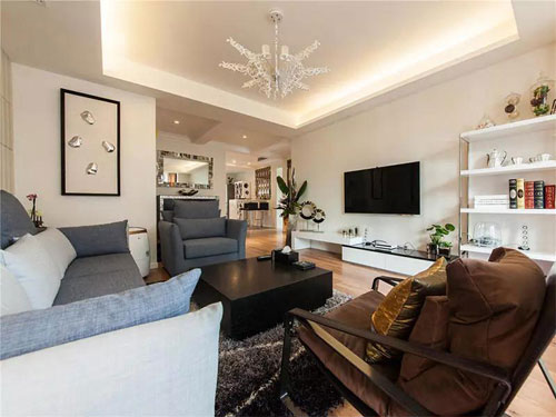 湘潭房產網(wǎng)3月28日訊 這套100m2現(xiàn)代簡約2居室,設計師將陽臺跟客廳打通,客廳整體光線和通透性大大提升,白天寬敞、明亮;夜晚暖心、靜逸。餐廳選用吧臺設計,設計師還運用菱形鏡面拓展了空間深度。