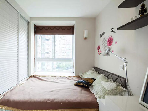 ▲咖色與淺米搭配簡潔的白色吊頂,讓空間淡雅迷人,調皮的心形貼畫令人心情愉悅。