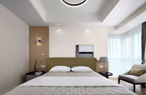 主臥空間應該是讓人安靜的時候,不管是色調、燈光還是材質機理都可以讓人得以放松,傍晚靠著落地窗坐在舒適的休閑椅,手里捧著一本自己喜愛的讀物,邊幾上放著剛喝了一口的咖啡,讓原本素雅的空間增添些許趣味......