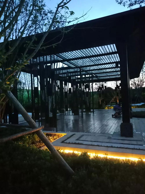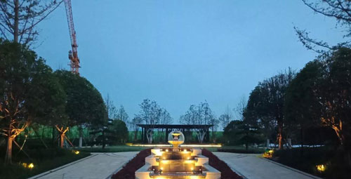疊水潺潺,代表著生活的美景與健康。燈光與噴泉,大氣磅礴與小家碧玉,與四周靜謐的景觀雕塑相互呼應。