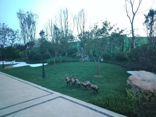 為與法式建筑相呼應,每一條重要景觀軸線的交匯處都會出現小景與雕塑,用童趣與童心融匯法式的浪漫,精雕細琢的藝術雕塑與林蔭步道相結合,構成園林浪漫主題。