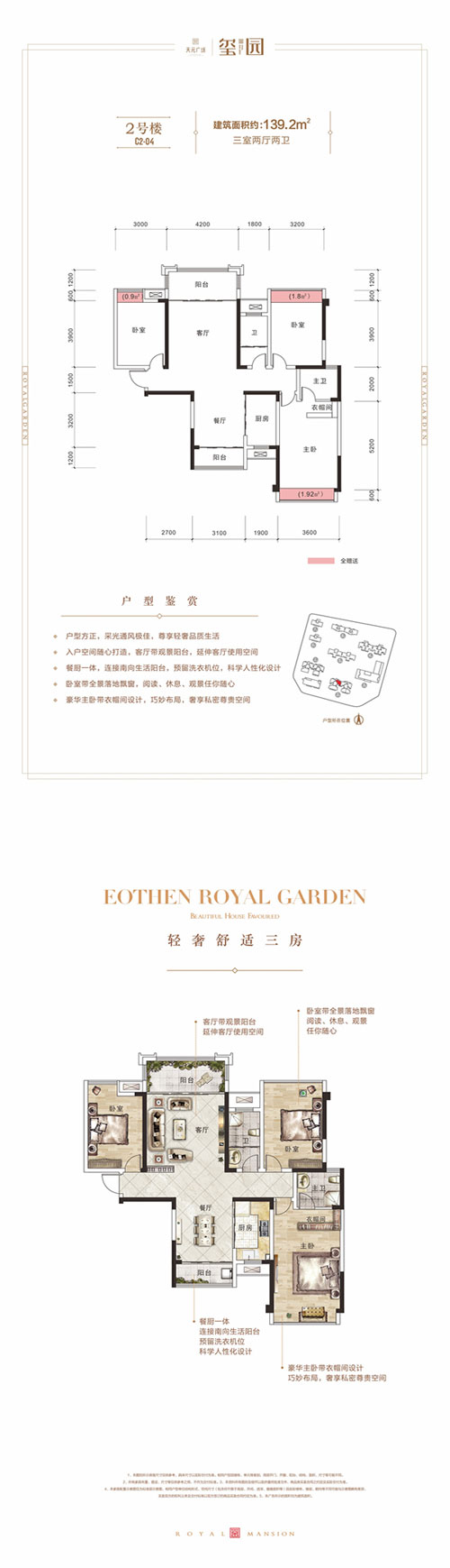 項(xiàng)目在小區(qū)的整體規(guī)劃布局上,注重臨城市主要道路的城市界面景觀設(shè)計(jì),堅(jiān)持以人為本的設(shè)計(jì)原則。小區(qū)的出入口、道路系統(tǒng)與城市道路有良好的銜接。在戶型的設(shè)計(jì)上,天元廣場·璽園注重合理性、舒適性、經(jīng)濟(jì)性,最大限度將景觀資源最大化,完善的配套設(shè)施,為居民提供良好的居住和生活服務(wù)條件。在項(xiàng)目的規(guī)劃布局上,注重建筑與人、環(huán)境與人以及人和人之間的和諧。充分考慮城市發(fā)展對小區(qū)的影響,使之達(dá)到與周邊的環(huán)境和諧共存,演繹一種“和諧、寧靜、品質(zhì)、精致”的居住方式。
