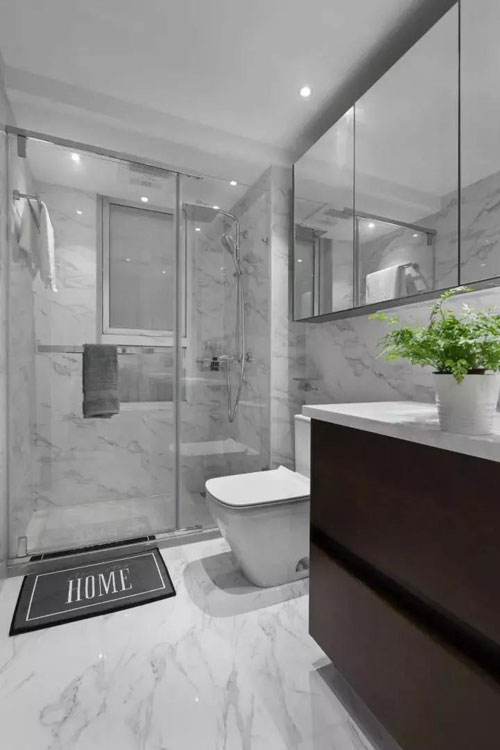 大理石的冷峻,理性中帶著自然紋路。木制溫潤,簡約的造型把天然機理裸露,情感中內秀謙和,個性張揚,搭配綠色生命,滿屏生機,充滿春意。衛浴空間,用最最簡單的形式,賦予靈性的聲音。