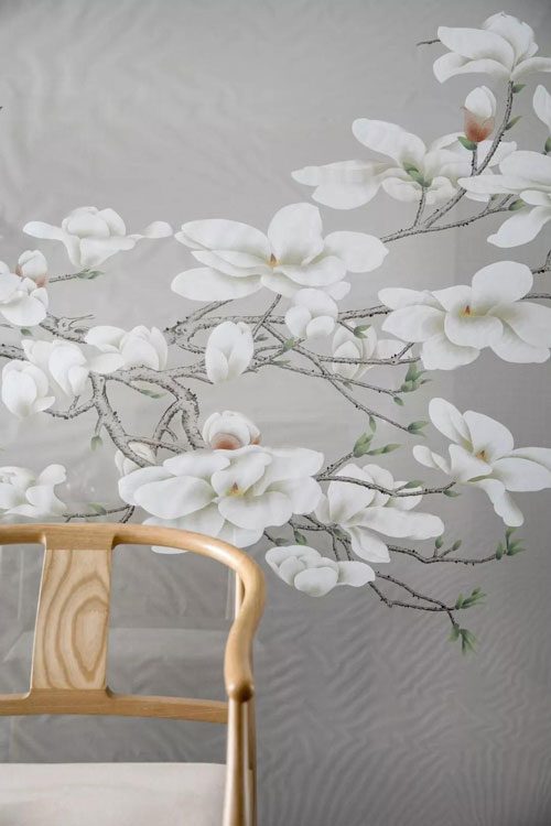 湘潭房產(chǎn)網(wǎng)8月23日訊 “秾芳依翠萼,煥爛一庭中……舞蝶迷香徑,翩翩逐晚風(fēng)”設(shè)計師將宋徽宗筆下的東方美學(xué)意境注入到了本案的空間設(shè)計中。進門可見一面米色系玉蘭屏風(fēng),這是幅出自工筆畫大家——于非闇的《玉蘭黃鸝》