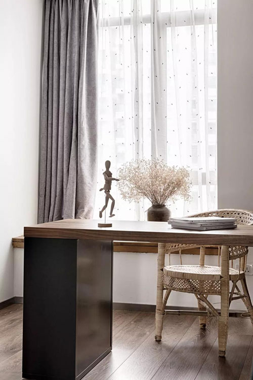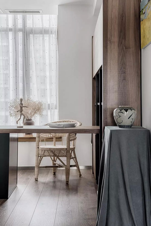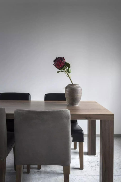 黑色彰顯,白色內(nèi)斂。灰色冷艷,木色溫馨。黑白灰配木色,是空間場域的語匯。讓材質(zhì)的純粹,述說空間的表情。