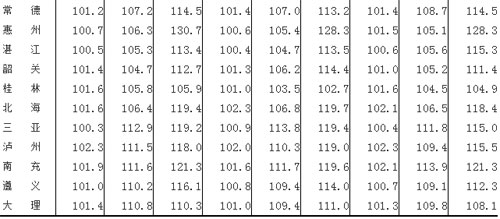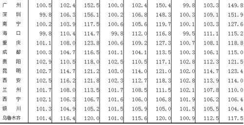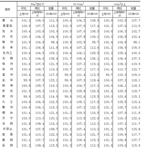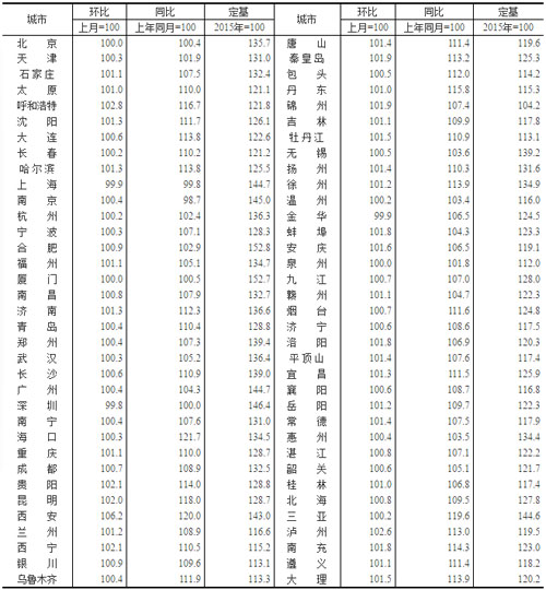 表3:2018年9月70個大中城市新建商品住宅銷售價格分類指數(二)