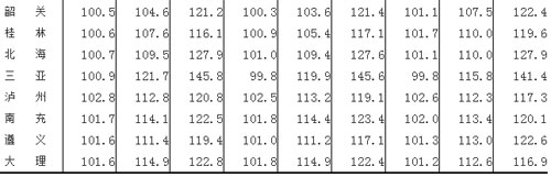 表5:15個熱點城市新建商品住宅銷售價格變動對比表