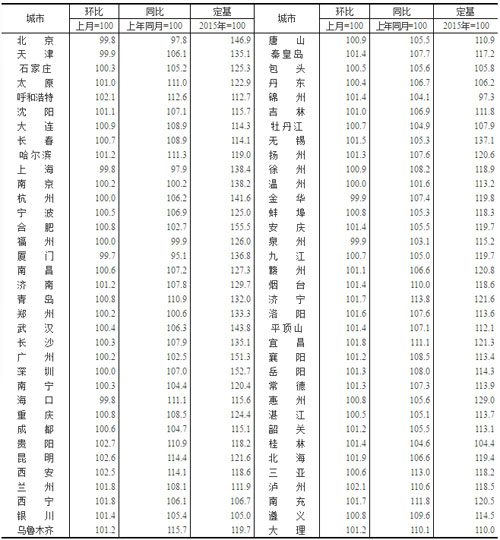 表1: 2018年9月70個大中城市新建商品住宅銷售價格指數