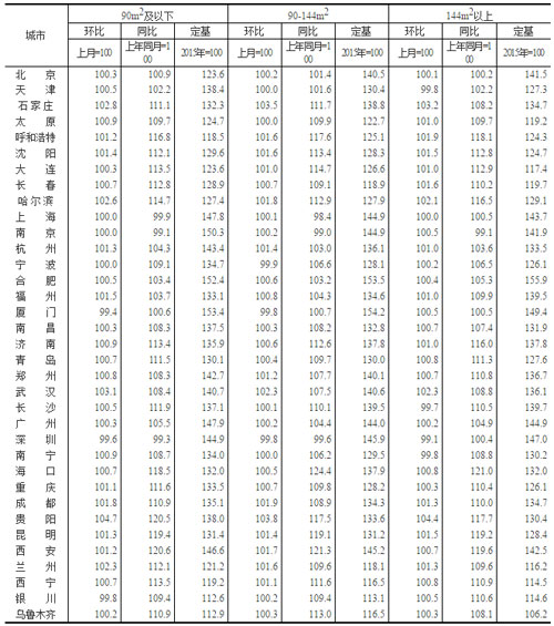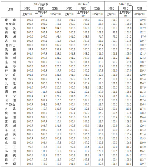 表3:2018年10月70個大中城市新建商品住宅銷售價格分類指數(一)