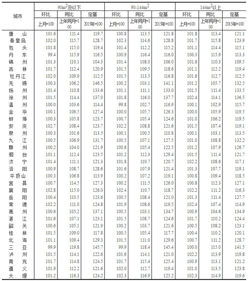 表3:2018年10月70個大中城市新建商品住宅銷售價格分類指數(二)
