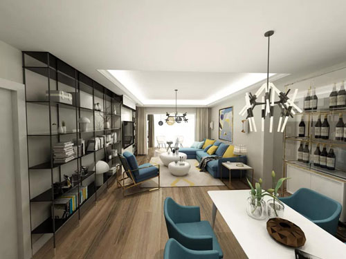 湘潭房產網11月24日訊    本案為二室二廳戶型,三口之家,業主為紅酒代理商,夫妻倆人經商多年,孕育出一優秀的兒子,已考上一流大學。眼光也是追隨現在最流行的現代簡約風格,本案以簡潔明快,色彩鮮明的設計風格為主調,整體設計主要考慮在總體布局方面和以滿足三口之家生活上的需求