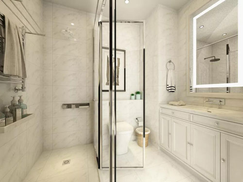 衛生間是以白色為基調,透明的玻璃使得整個空間看起來十分寬敞,簡潔而又明亮。