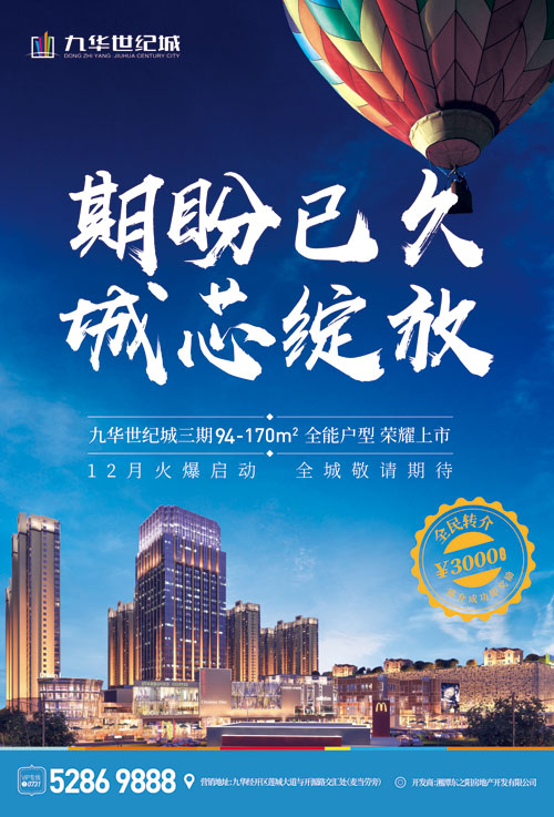 聚焦一城目光,承載一城期待!匠心品質,禮獻湘潭!九華世紀城三期,奢闊尺度,全能戶型,12月22日全城認籌即將火爆盛啟!人生進階時,當居城芯處!
