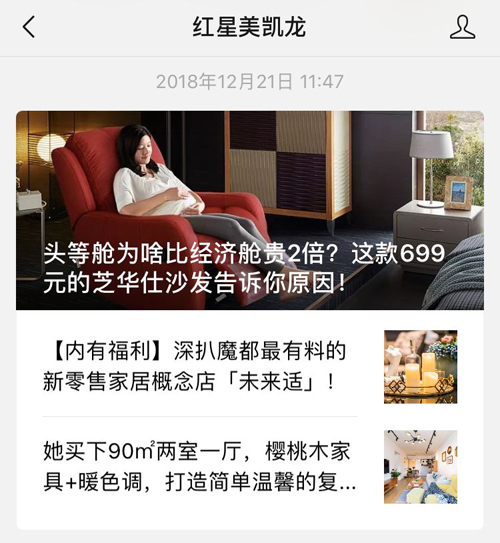 而剛剛與紅星美凱龍達成戰略合作的芝華仕,則成為了第一個吃到IMP“螃蟹”的家居品牌。IMP平臺有多強大,芝華仕最有發言權。芝華仕在元旦大促中推出了“699元頭等艙沙發單椅”爆款和“4599元頭等艙3座位+1沙發組合”參與“團尖貨”,很快被搶購一空。