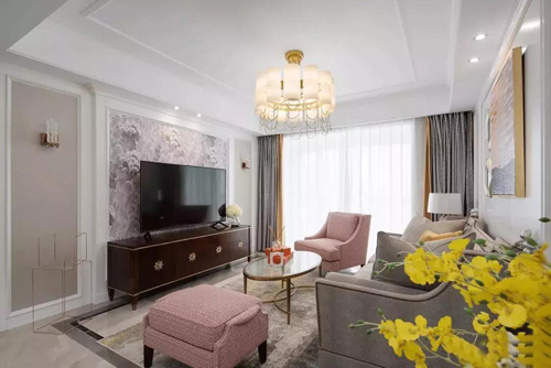 ▲ 無論是沙發背景墻還是電視背景墻,設計師都做了簡約的線條造型變化。