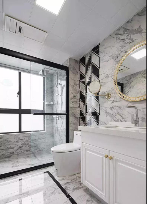 ▲ 衛生間,大理石的自然紋理流暢而富有藝術感,與金屬元素搭配在一起,時尚又極具格調。