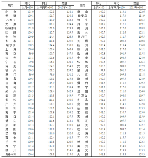 表3:2018年12月70個(gè)大中城市新建商品住宅銷(xiāo)售價(jià)格分類(lèi)指數(shù)(二)