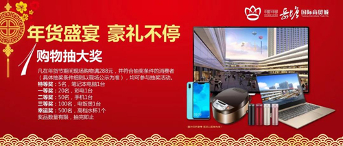 凡在年貨節期間現場購物滿288元,并符合抽獎條件的消費者(具體抽獎條件細則以現場公示為準),均可參與抽獎活動。