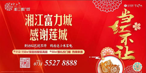 最新動態(tài):湘江富力城感謝蓮城,到訪紅包送不停,購房送小米家電;112-150㎡雙名校墅區(qū)高層,50㎡雅禮校門鋪,熱辣來襲。【詳情】