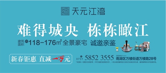 最新動態(tài):天元江灣,難得城央,棟棟瞰江,建筑面積約118-176㎡全景豪宅,誠邀品鑒;新春鉅惠,直減一萬元。【詳情】