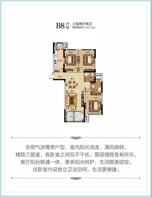 建面約145㎡大三房,新品上市,滿足家人的居住需求,幸福有序生活從此開啟。