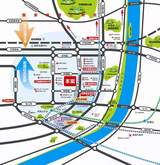 得益于長(zhǎng)株潭一體化大戰(zhàn)略,九華未來(lái)將直接分享大湘江新區(qū)的紅利。三縱三橫要道環(huán)繞周邊,長(zhǎng)潭西高速、潭州大道(對(duì)接長(zhǎng)沙平塘大道)、沿江大道(對(duì)接長(zhǎng)沙瀟湘大道),長(zhǎng)沙地鐵3號(hào)線延長(zhǎng)線將直達(dá)湘潭高鐵北站,長(zhǎng)潭輕軌1號(hào)線經(jīng)過(guò)九華連通火車(chē)站,步行至‘九華管委會(huì)站點(diǎn)’僅2分鐘。