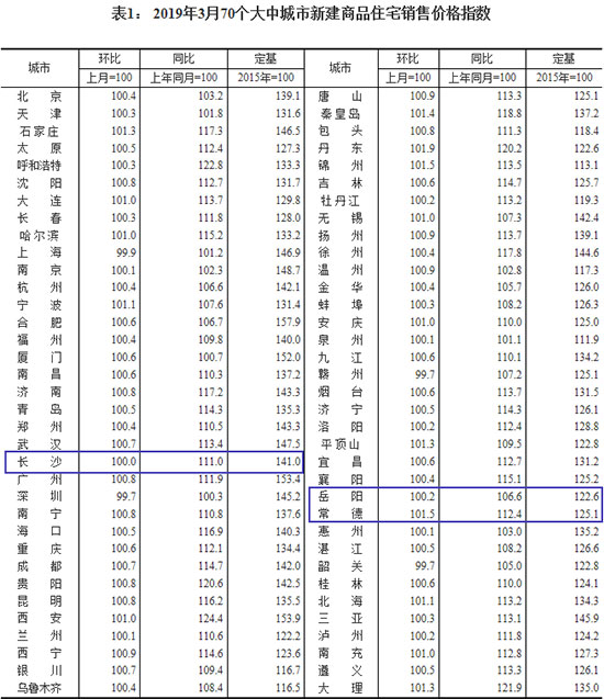 湘潭房產(chǎn)網(wǎng)4月16日新 國家統(tǒng)計(jì)局今日發(fā)布了2019年3月份70個(gè)大中城市商品住宅銷售價(jià)格變動(dòng)情況。統(tǒng)計(jì)數(shù)據(jù)顯示,2019年3月4個(gè)城市房價(jià)環(huán)比下跌,分別是:上海、深圳、贛 州、韶關(guān)。房價(jià)同比無一下跌,其中47城市房價(jià)同比上漲超過10%,其中漲幅超過20%的城市分別為:呼和浩特、貴陽、西安、丹東。