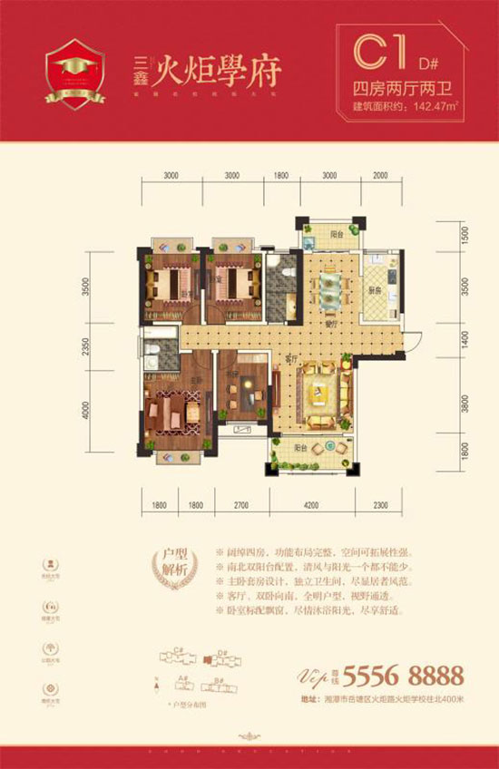 139-143平米寬敞四房,闊綽空間感,動(dòng)靜分區(qū)、南北通透,帶來(lái)一流的采光與通風(fēng),主臥自帶衛(wèi)生間,彰顯主人尊貴,南向270度觀景,盡攬園林好風(fēng)景。三代同堂,歡聲笑語(yǔ),敘天倫之樂(lè)事。