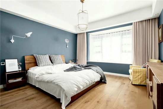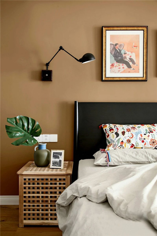 臥室是玩轉(zhuǎn)色彩漆,選用當(dāng)下流行的衣服色彩,走的是水粉中的高級(jí)灰色彩系列。