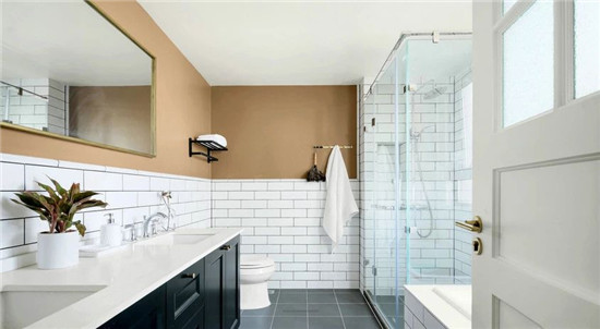 衛(wèi)生間用了防水乳膠漆和墻磚搭配,純黑色的浴室柜,和墻面形成一個(gè)強(qiáng)烈對(duì)比,這種歐美穿搭不知道你會(huì)不會(huì)覺(jué)得很棒呢。