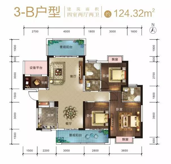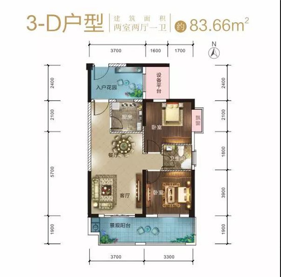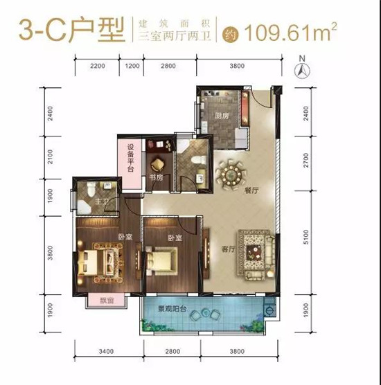 餐、客廳一體聯(lián)通南向觀景陽臺