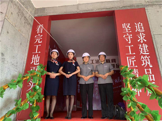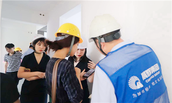 開(kāi)放儀式結(jié)束之后,接待人員帶領(lǐng)大家做好安全準(zhǔn)備后進(jìn)入施工現(xiàn)場(chǎng),近距離參觀檢驗(yàn)小區(qū)規(guī)劃與工程品質(zhì)。在“工法區(qū)”和“樣板區(qū)”兩大展示區(qū)域,由專門(mén)的工程師為大家講解施工的各種用材、流程、以及工藝。