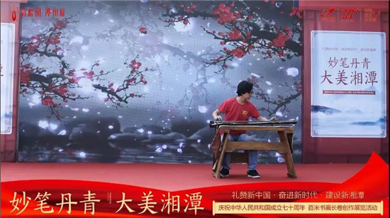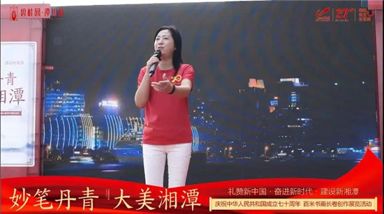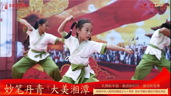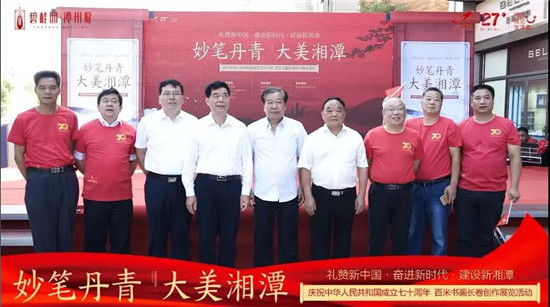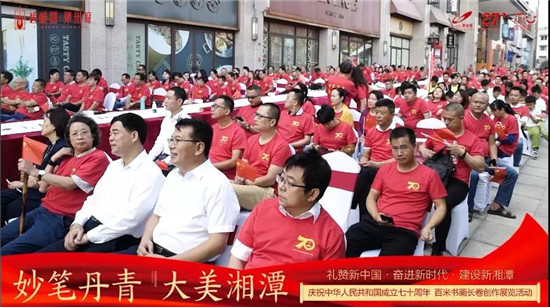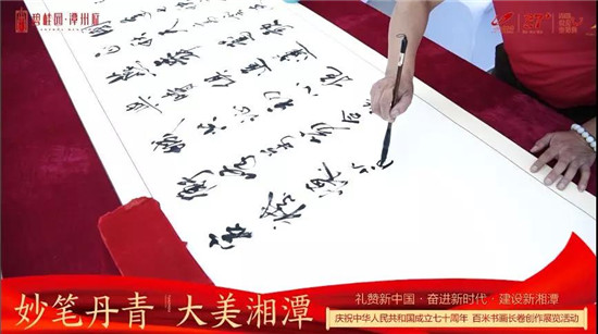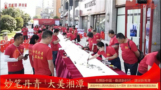 湘江岸邊,寶塔山麓,秋高氣爽,菊桂飄香。九月二十二日,湘潭市碧桂園潭州府前坪眾藝云集,熱鬧非凡。慶祝中華人民共和國成立70周年暨“妙筆丹青·大美湘潭”百米書畫長卷創作展覽活動在這里隆重舉行。