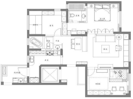 125平的房子做了三室兩廳,這樣每個空間都比較寬敞,尤其是臥室和客餐廳,書房+榻榻米的設置也讓房間多功能化,一個以書會友的舒適場所。
