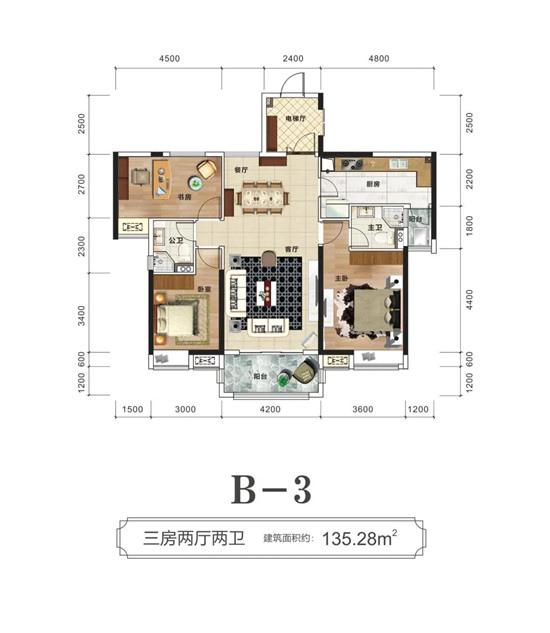 廚房、客餐廳、陽臺連通布局,便利大氣