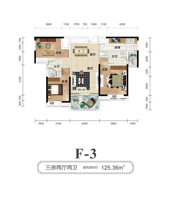 廚房、客餐廳、陽臺連通布局,便利大氣