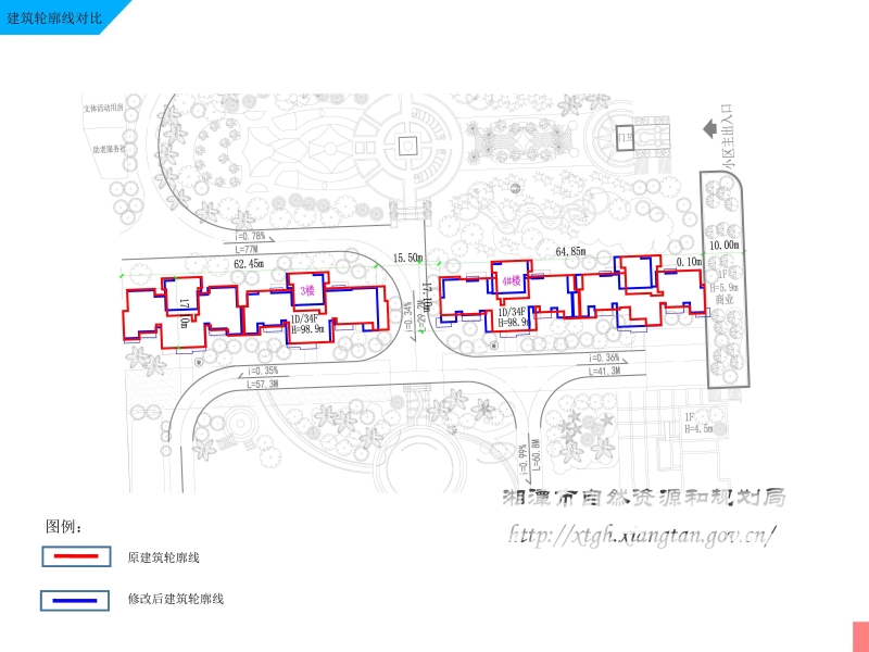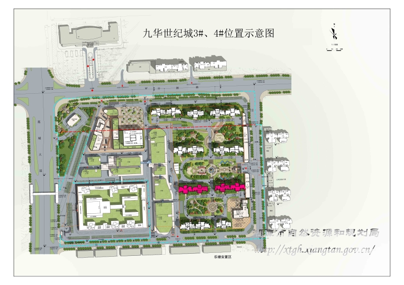 本項目位于湘潭市九華經濟技術開發區,項目基地西側為蓮城大道,東側為樂塘路,南側為官塘路,北側為開源路,毗鄰九華管委會大樓,西南側有紅星美凱龍建材家居市場。本次對3#樓和4#樓建筑方案調整進行公示: