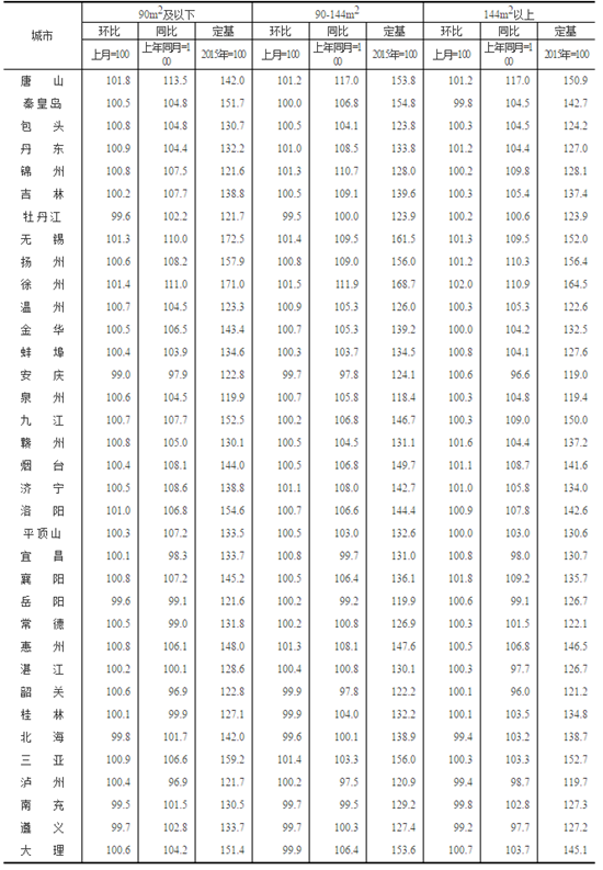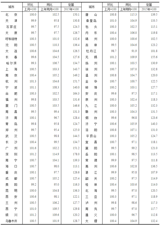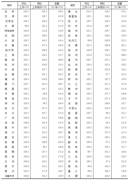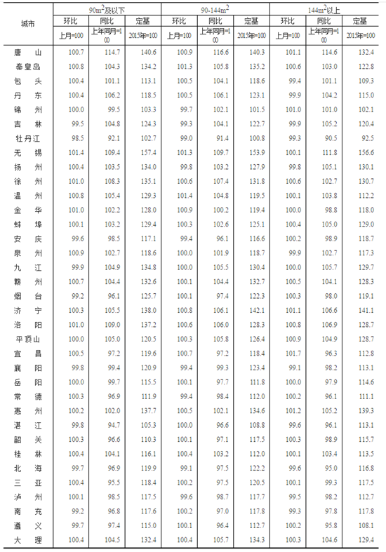 3.價格指數的計算方法詳見中國統計信息網《住宅銷售價格統計調查方案》。