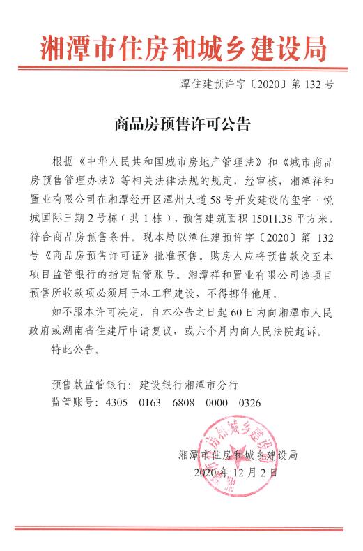 關(guān)于璽宇·悅城國(guó)際三期2號(hào)棟(共1棟)預(yù)售許可公告